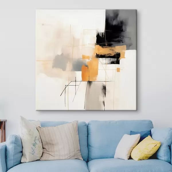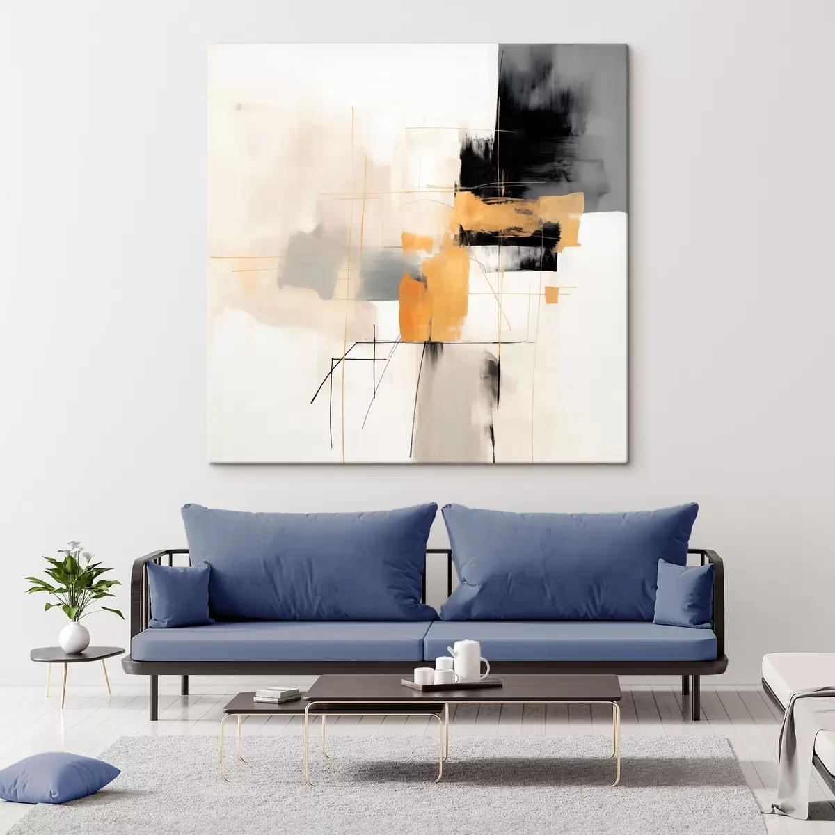 Tableau Peinture moderne, accents beige, pêche et graphite Nr s46323