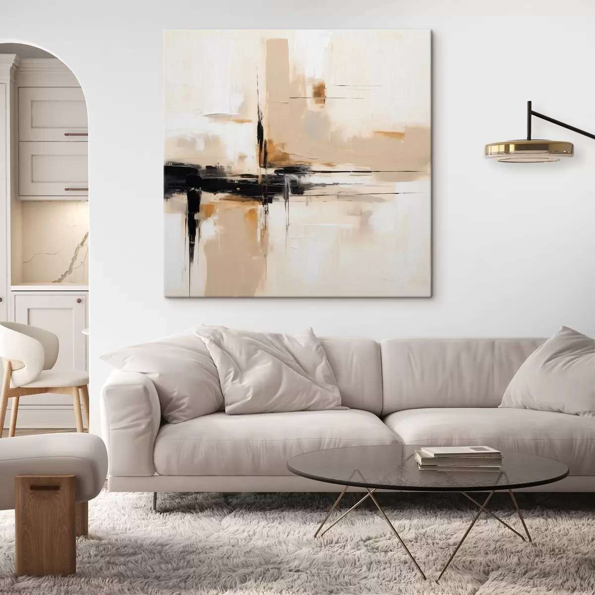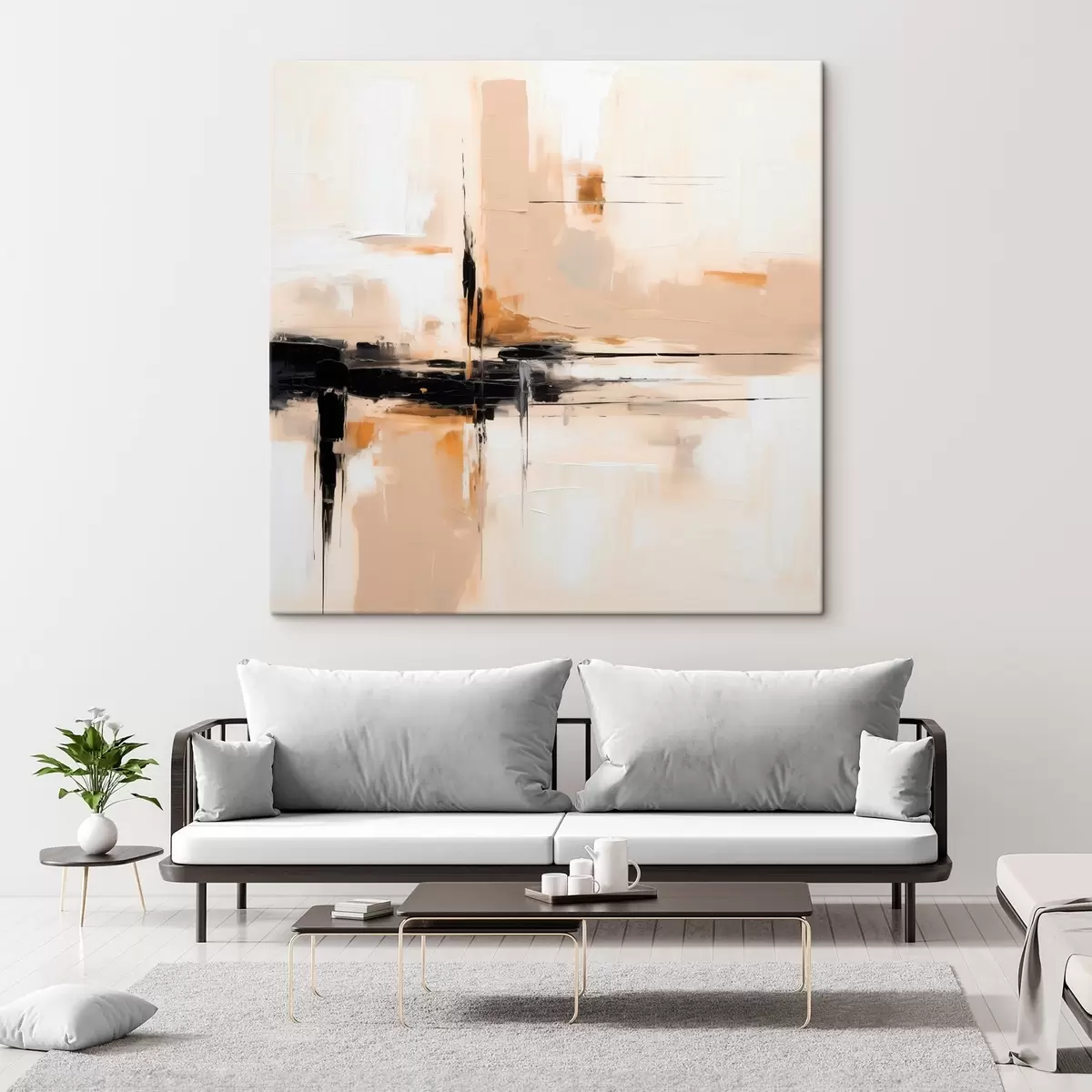 Tableau Beige et noir, abstraction verticale dans un style minimaliste s46326