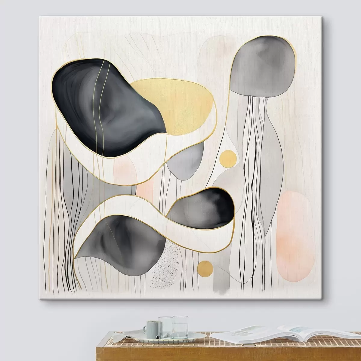 Tableau Composition neutre, taches grises et sableuses dans un style moderne s46334