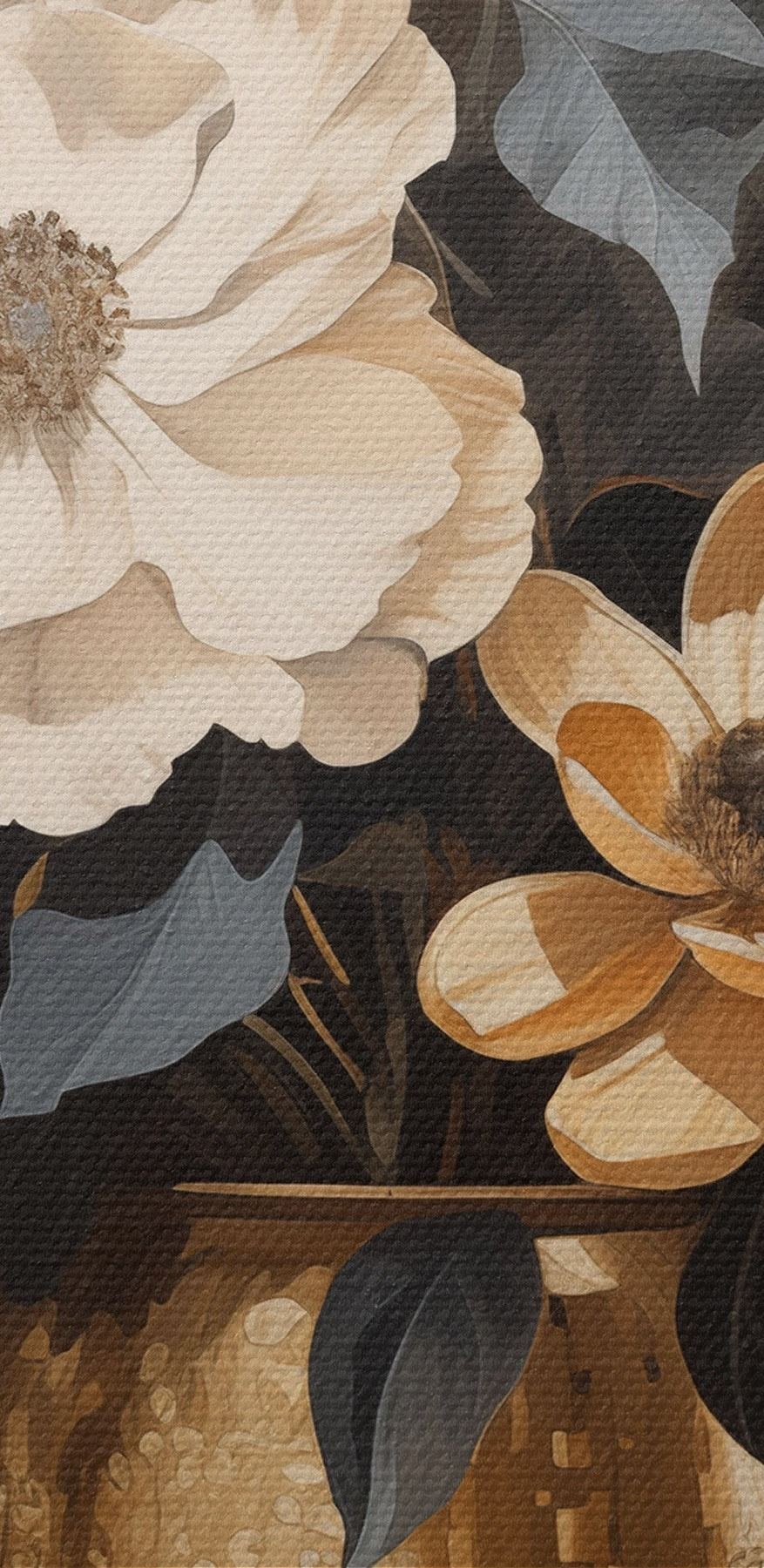 Trois types de matériaux peuvent être commandés : Economic Canvas - matériau dense et durable pour l'impression numérique, identique à la toile de peintre, surface imperméable, reproduction réaliste des détails, matériau à grain moyen. Premium Canvas - la texture ressemble à celle d'une toile de peintre (petits fils entrelacés). Reproduction douce et détaillée de l'image sur une surface mate. Eco-Premium - tissu 100 % coton de haute qualité. Grâce aux fibres naturelles de coton, le matériau est durable et résistant à l'usure. Excellente reproduction des couleurs et des détails.
