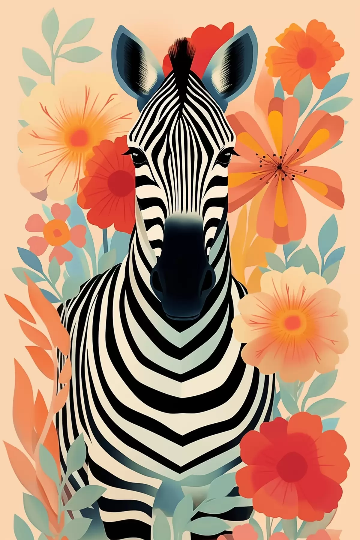 Tableau Zèbre parmi les fleurs Nr s46457