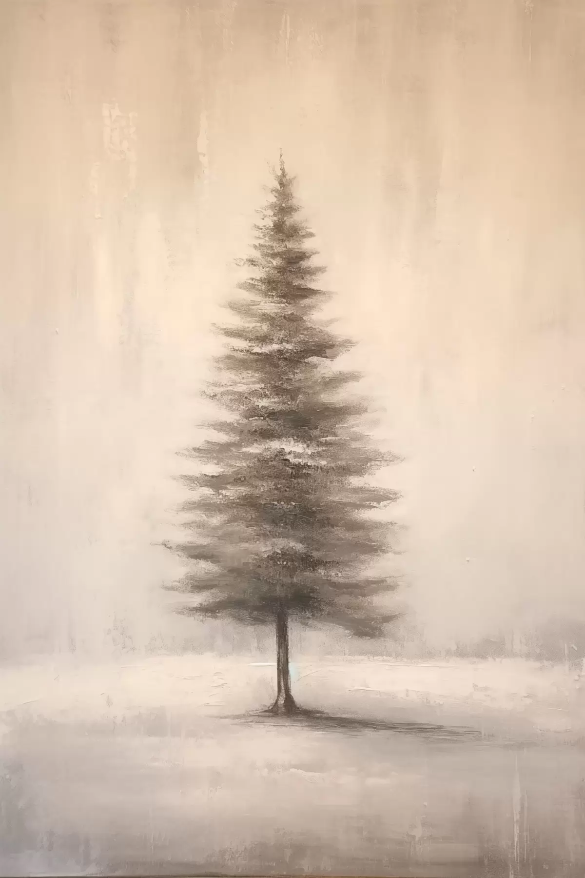 Tableau Sapin monochrome. Paysage hivernal minimaliste. s46465
