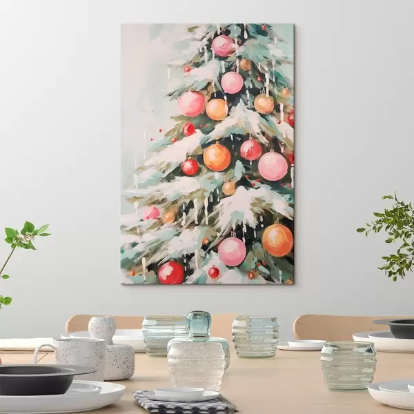 Tableau Sapin de Noël avec neige et boules roses Nr s46480