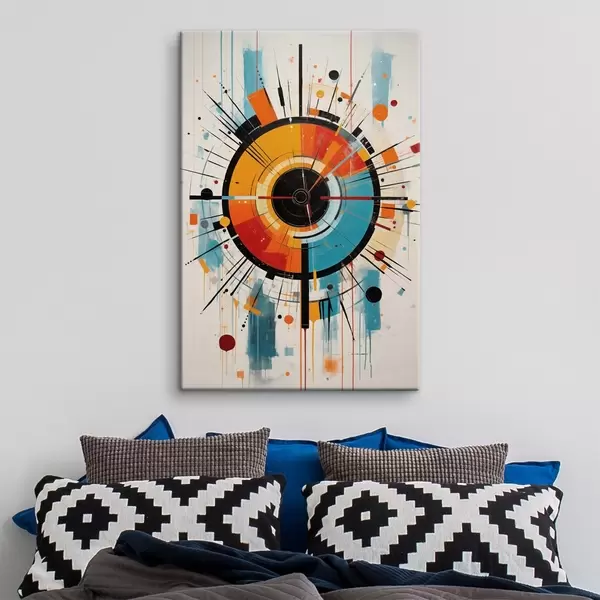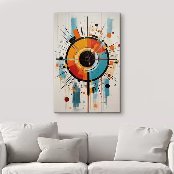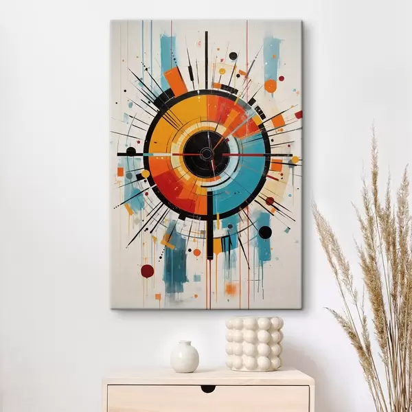 Tableau Éclatement radial en bleu sarcelle, orange et noir Nr s46485
