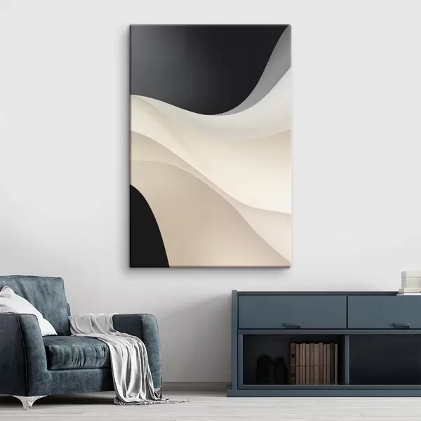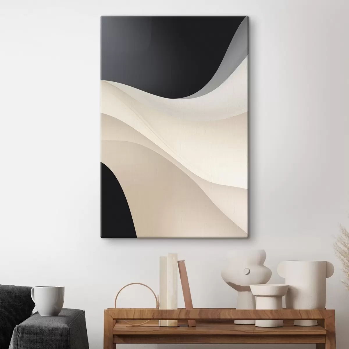 Tableau Courbes fluides superposées en noir, crème et taupe Nr s46492