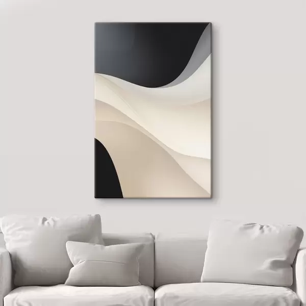Tableau Courbes fluides superposées en noir, crème et taupe s46492
