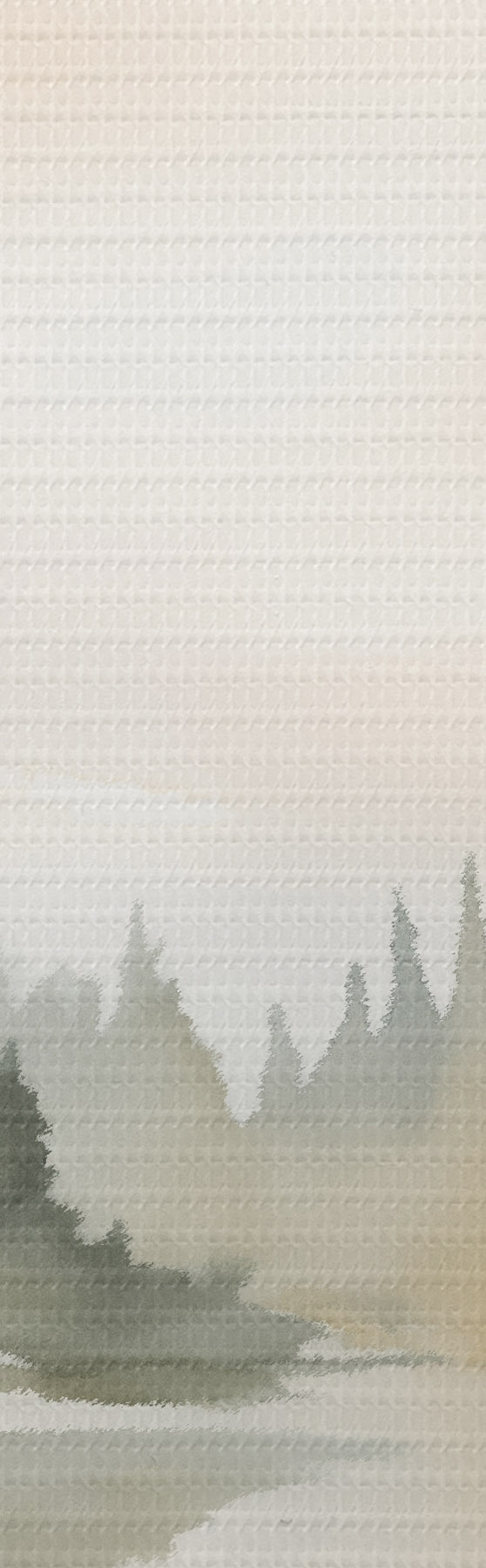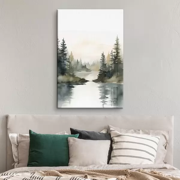 Tableau Forêt brumeuse de conifères au-dessus d'une rivière calme, style aquarelle Nr s46507