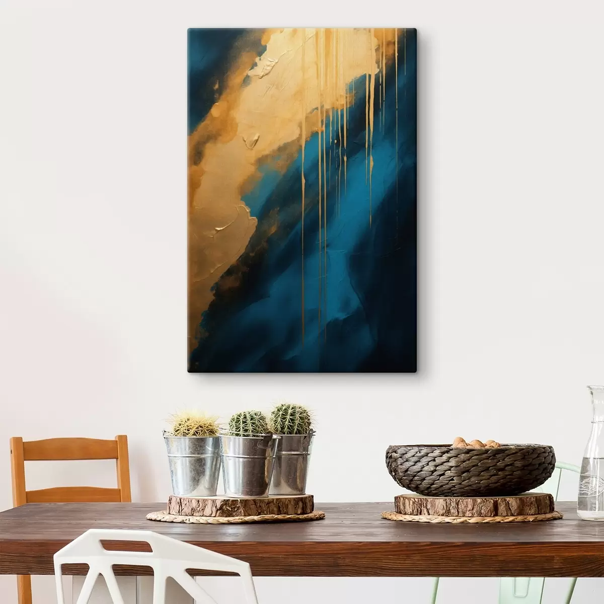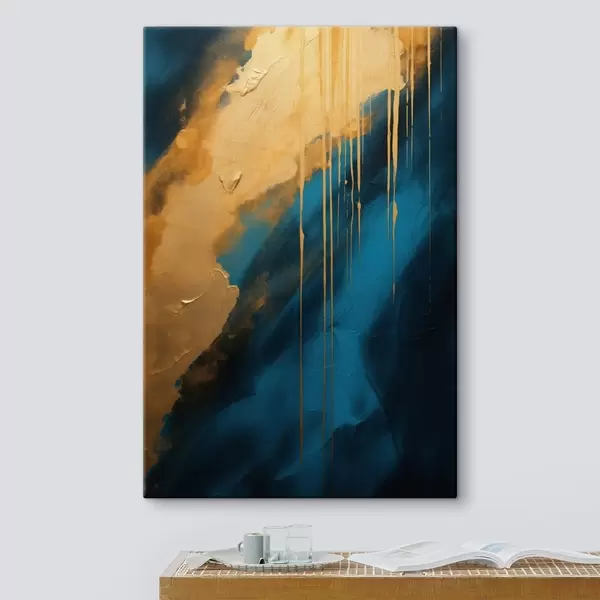 Tableau Abstrait bleu sarcelle et bleu foncé avec des reflets chauds fluides s46509