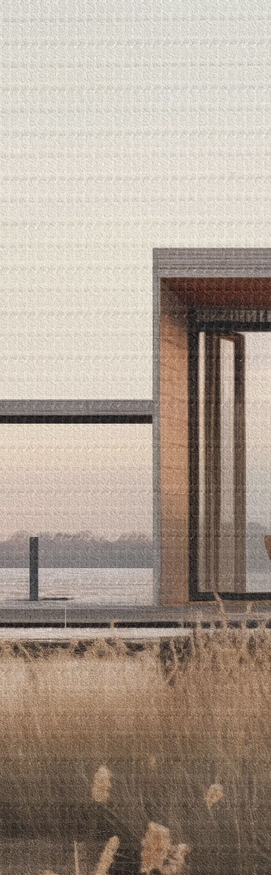 Tableau Cabane moderne au bord d'un lac, parmi les roseaux, au crépuscule Nr s46513