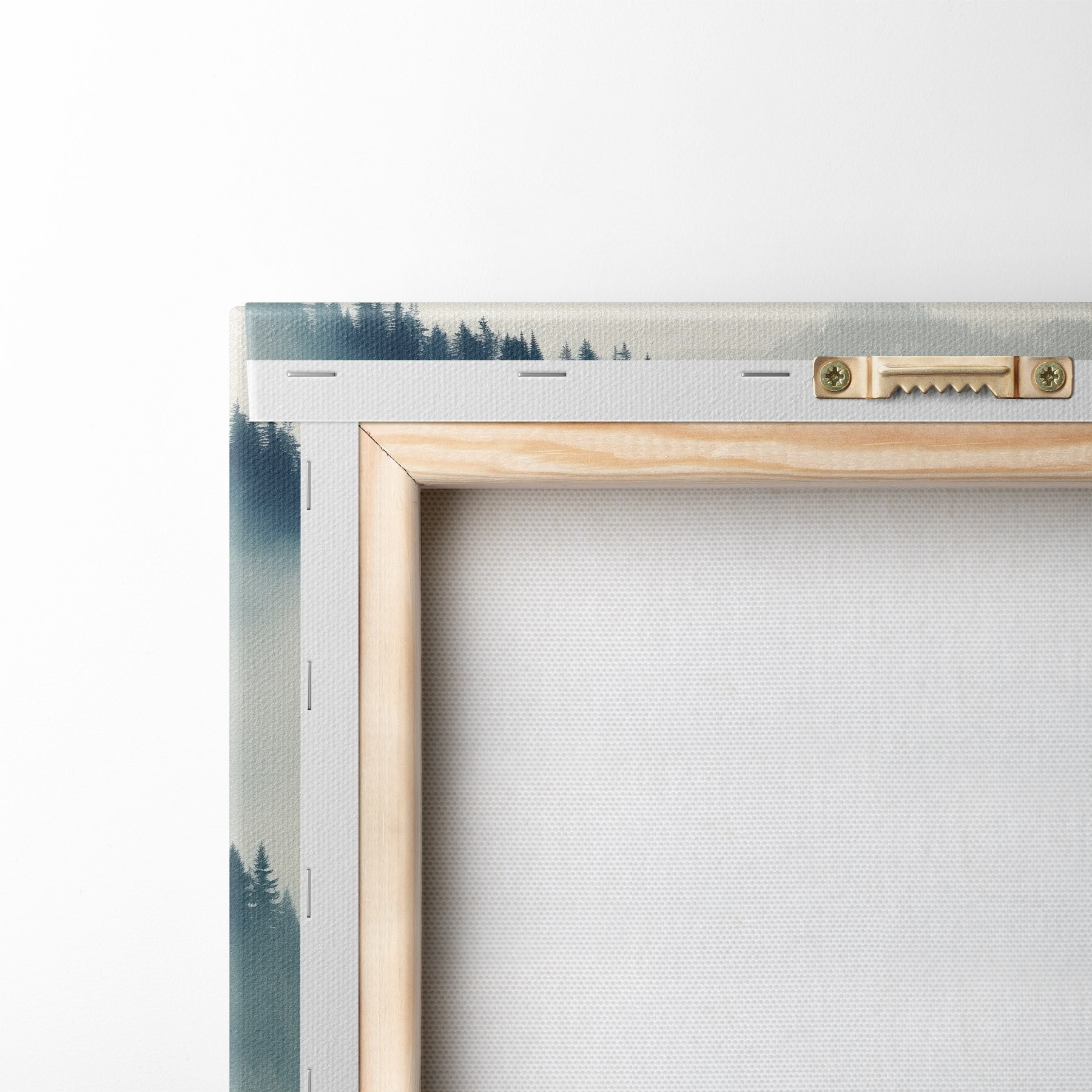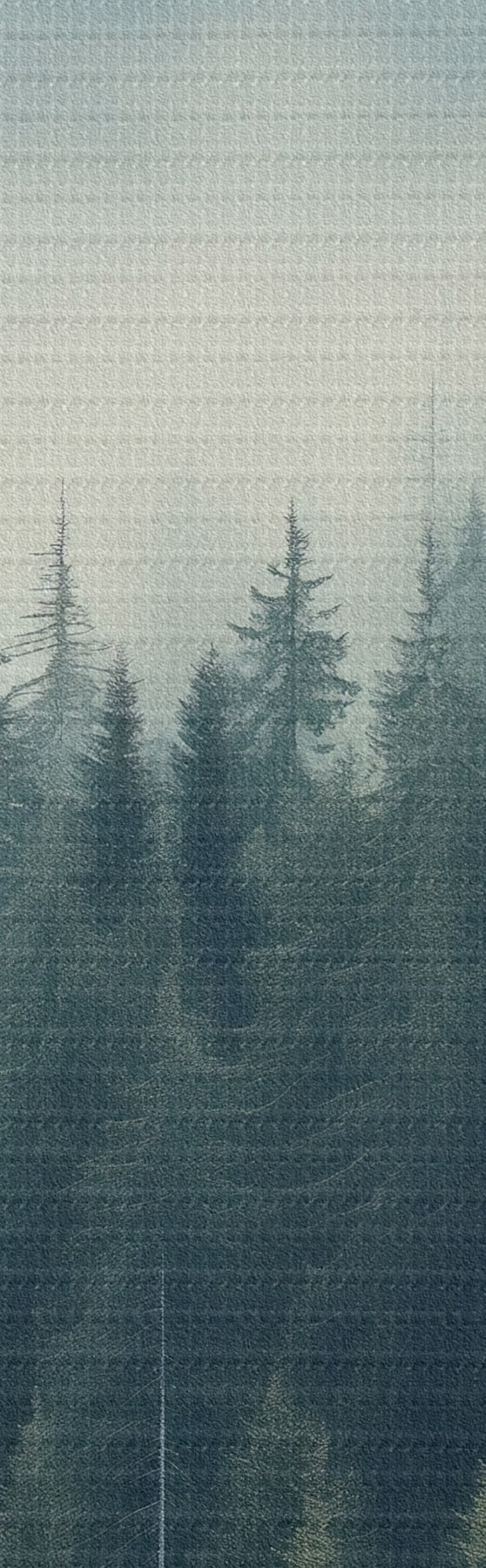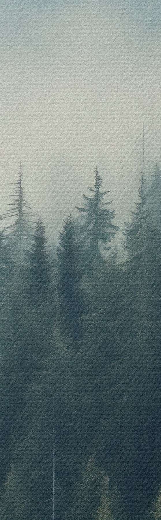Tableau Brouillard sur les pentes couvertes de conifères, tons vert foncé s46516