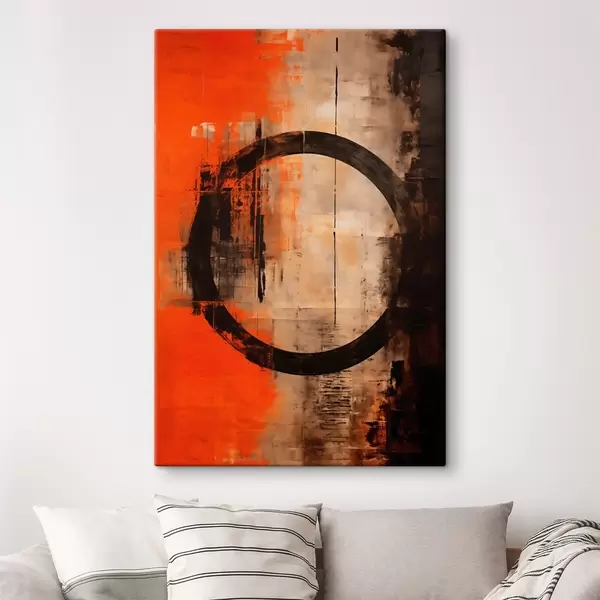 Tableau Résumé avec un grand cercle noir et des textures chaleureuses Nr s46528