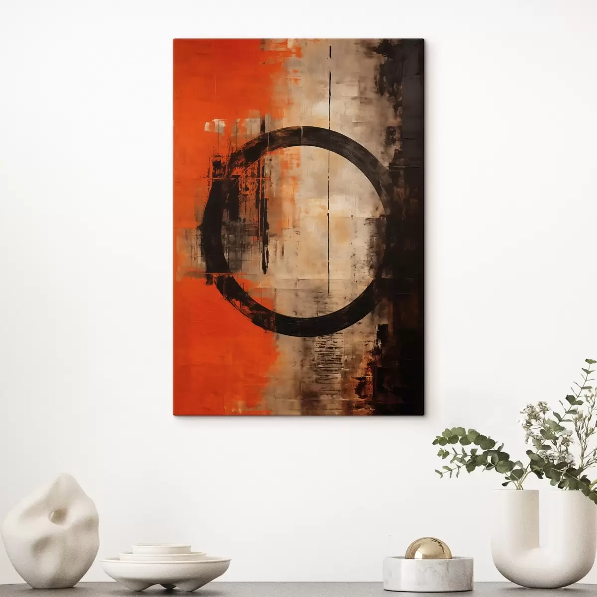 Tableau Résumé avec un grand cercle noir et des textures chaleureuses s46528