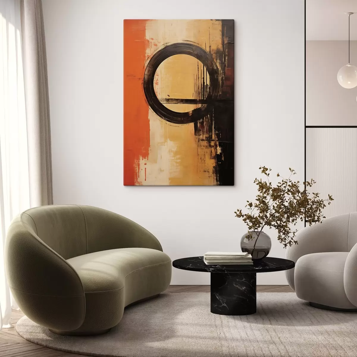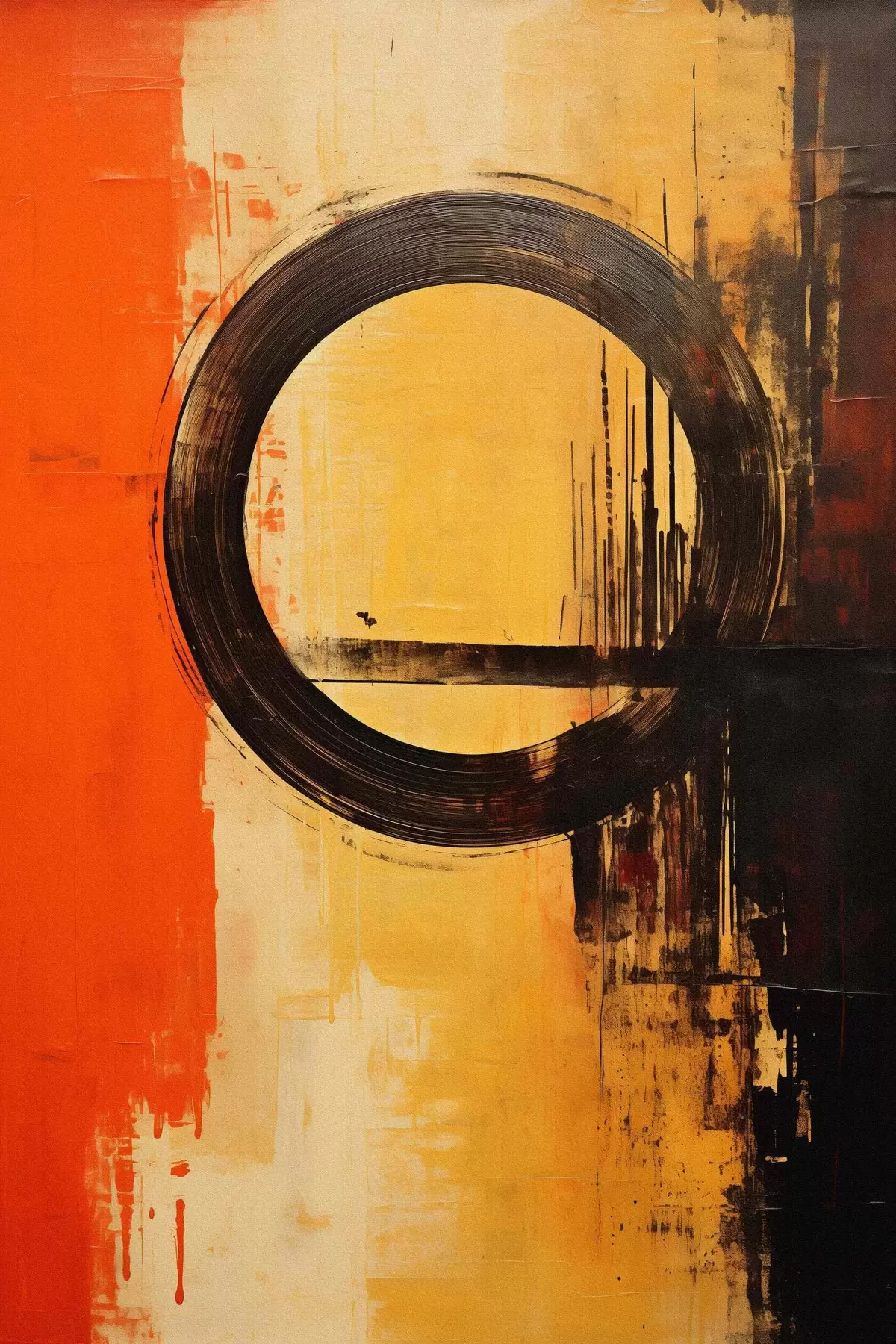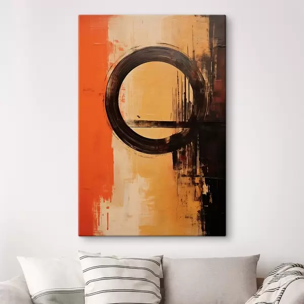 Tableau Résumé avec un anneau noir sur fond sable-terre cuite Nr s46529