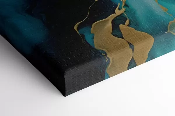 Tableau Abstrait bleu sarcelle avec un trait ocre s46530