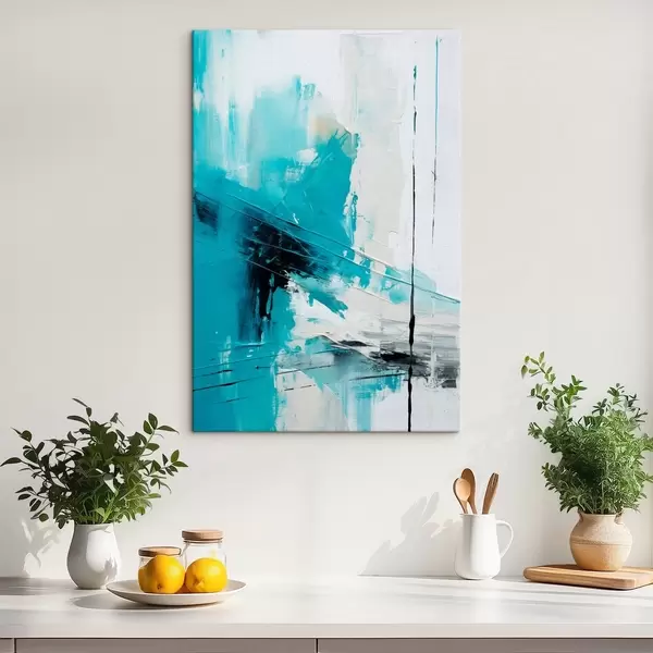 Tableau Trait turquoise sur fond blanc avec un trait noir Nr s46545