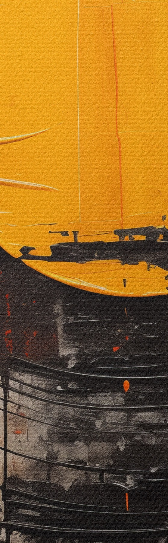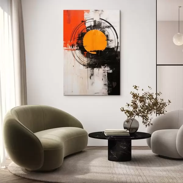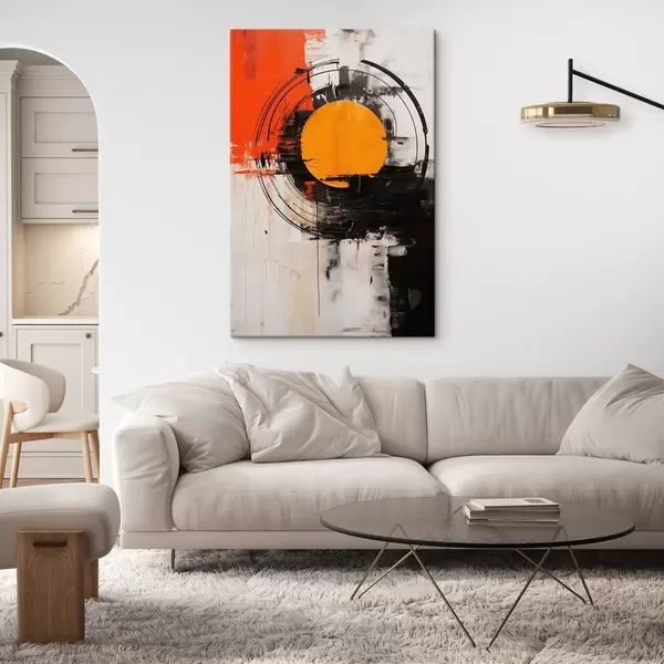 Tableau Disque orange dans un anneau noir, traits et éclaboussures s46550