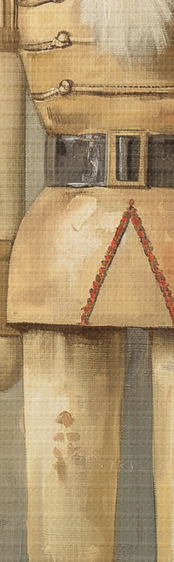 Le tableau peut être essuyé délicatement avec un chiffon doux et sec ou une éponge ; il n'est pas recommandé d'utiliser des produits humides. L'utilisation d'une éponge humide n'est autorisée que si le tableau a été verni.