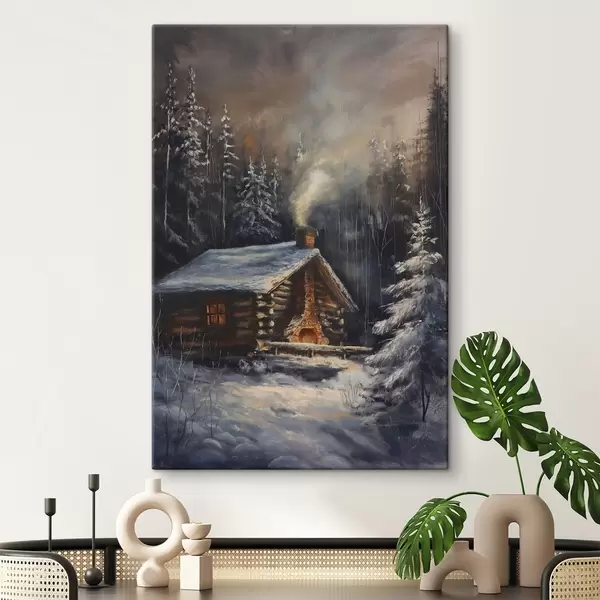 Tableau Chalet dans une forêt en hiver Nr s46606