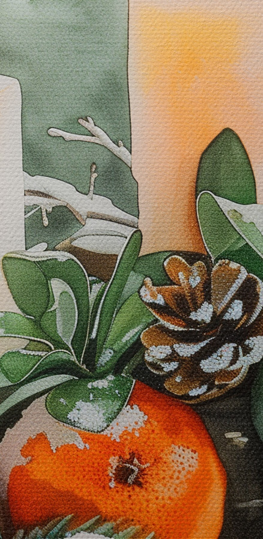 Tableau Bougies, mandarines et pommes de pin Nr s46614
