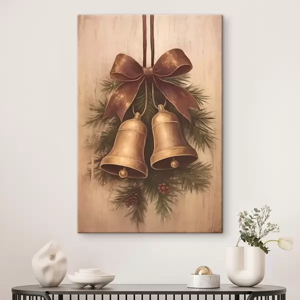 Tableau Décoration de Noël vintage avec deux cloches et un nœud s46626
