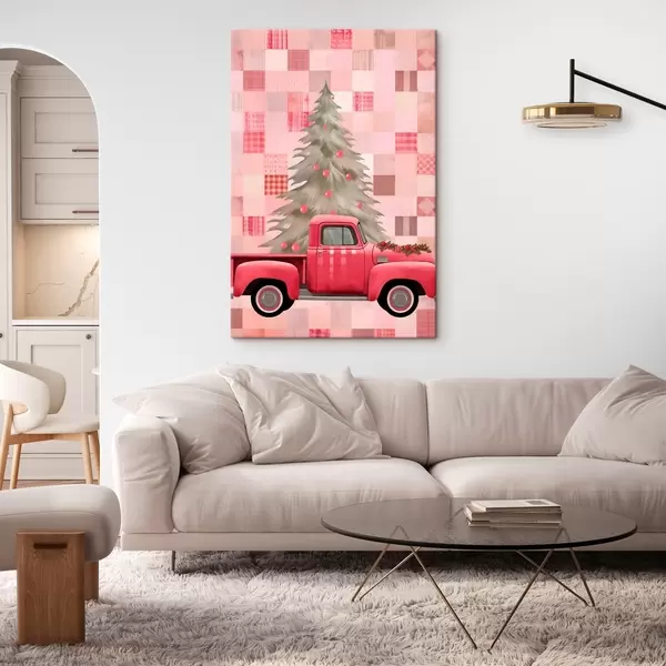 Tableau Camion rétro avec un sapin de Noël s46632