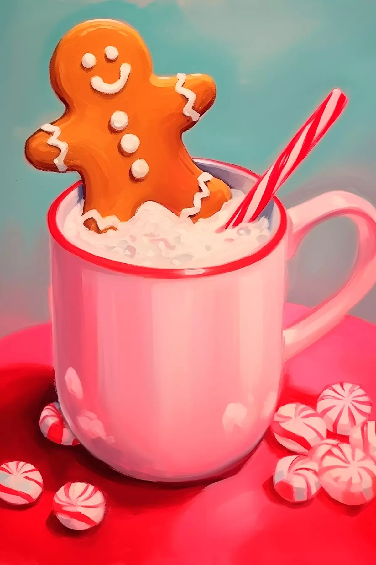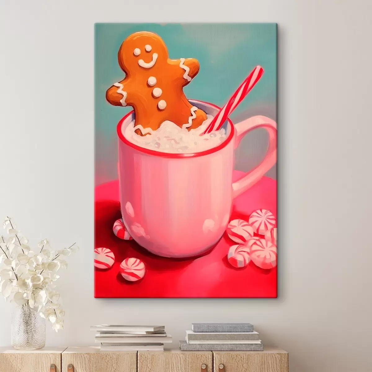 Tableau Bonhomme en pain d'épice dans une tasse de chocolat chaud s46635