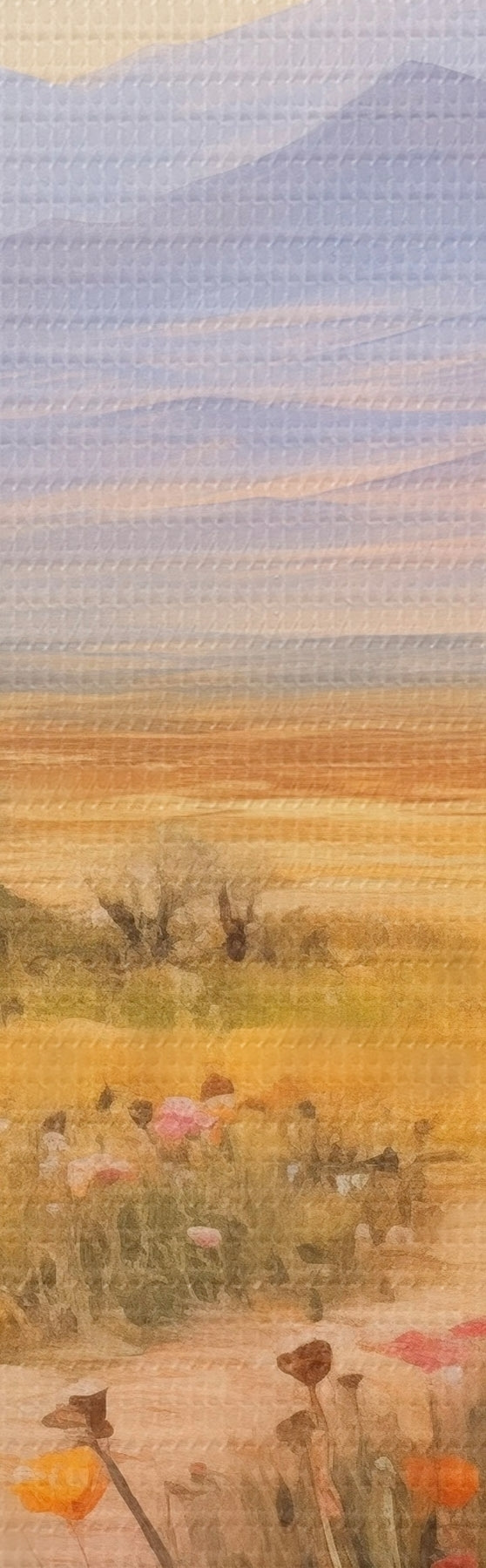 Tableau Paysage, champ de fleurs colorées avec des montagnes en arrière-plan, couleurs douces et pastel Nr s46686