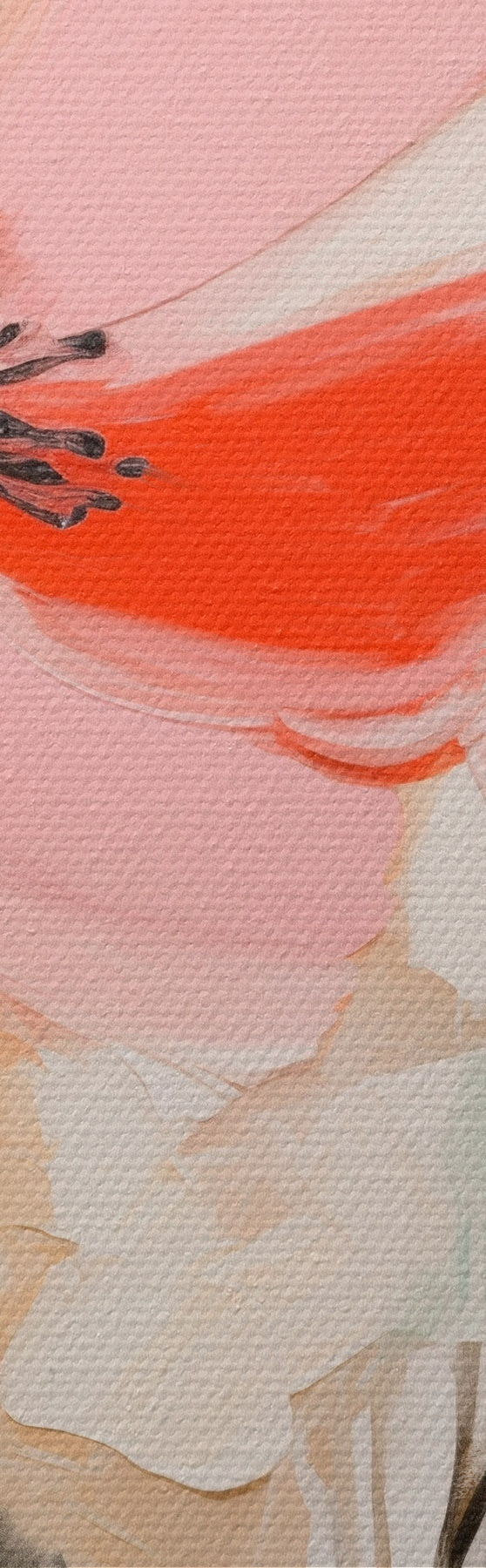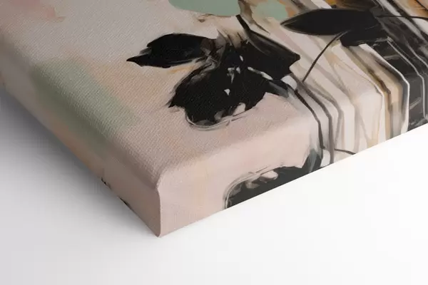 Tableau Fleurs roses et noires avec des feuilles, couleurs pastel douces, composition florale abstraite, art minimaliste s46687