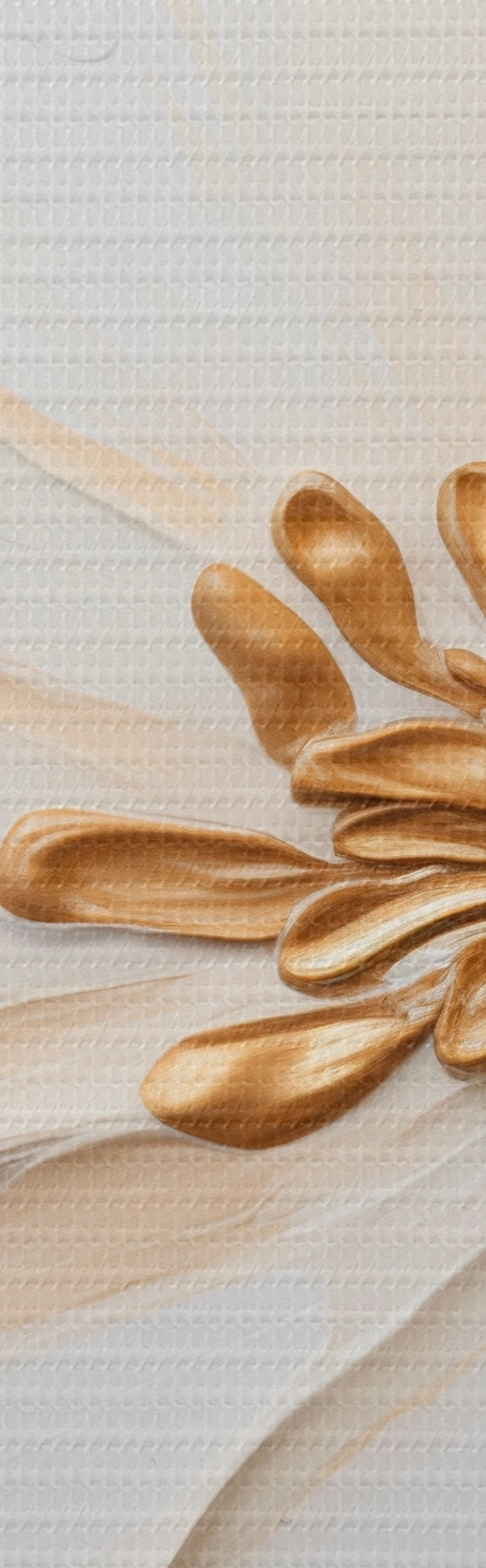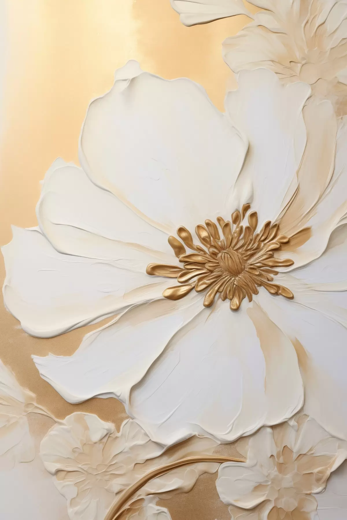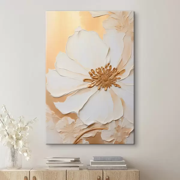 Tableau Fleur blanche aux pétales délicats, imitation coups de pinceau épais, sur fond texturé orange clair. Nr s46691