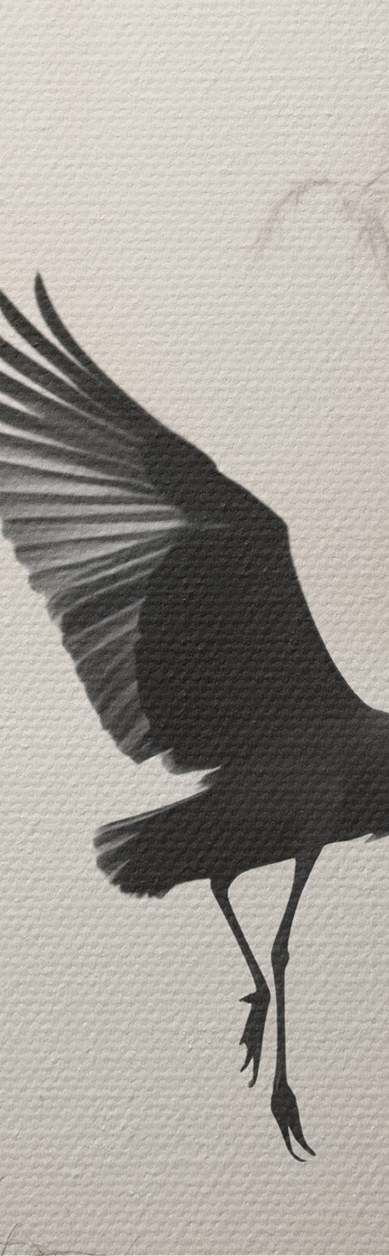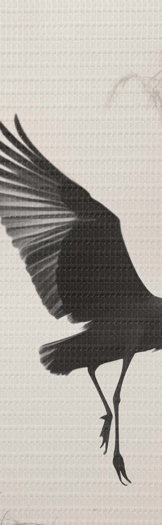 Tableau Un héron blanc aux ailes déployées, volant près de grands roseaux, composition minimaliste en noir et blanc Nr s46694