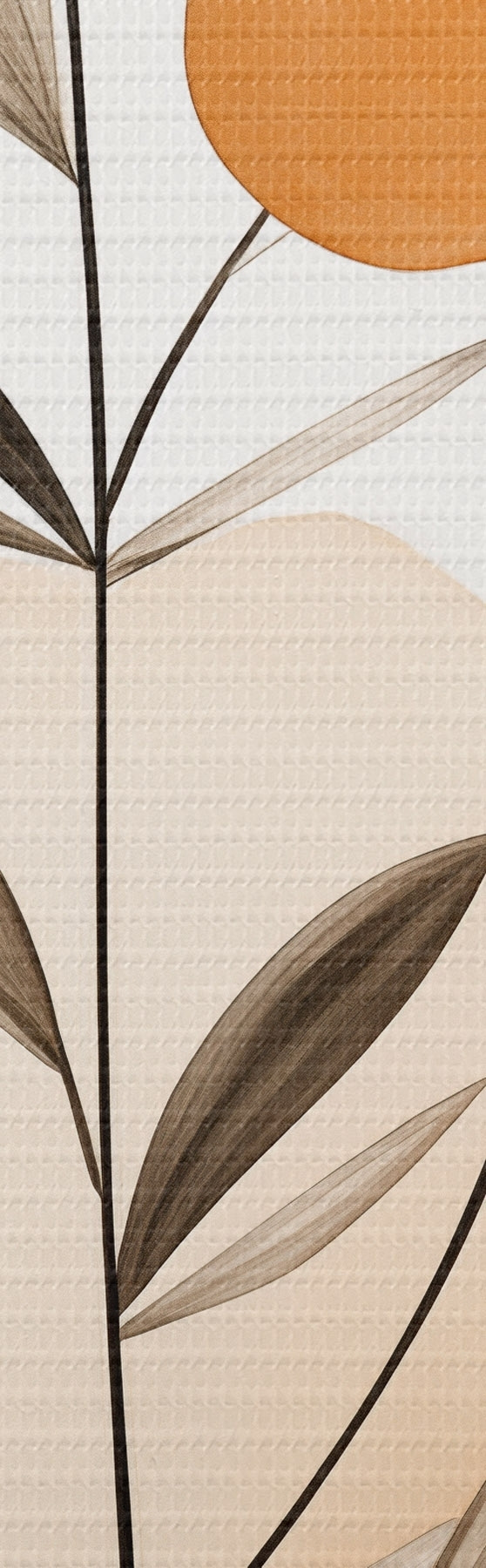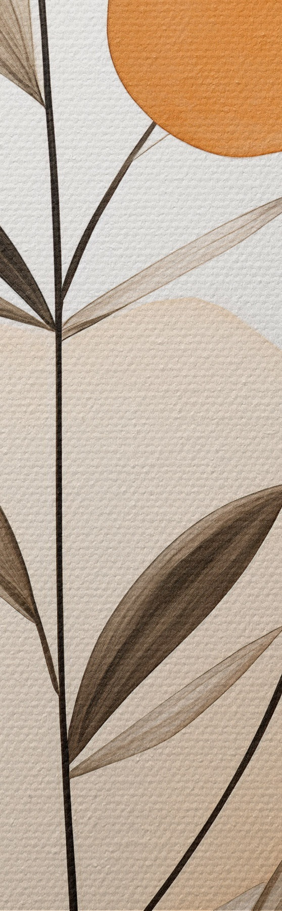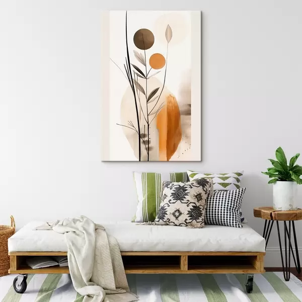 Tableau Imitation de peinture abstraite avec des cercles orange et gris, des feuilles et des branches, style moderne, effet aquarelle Nr s46698