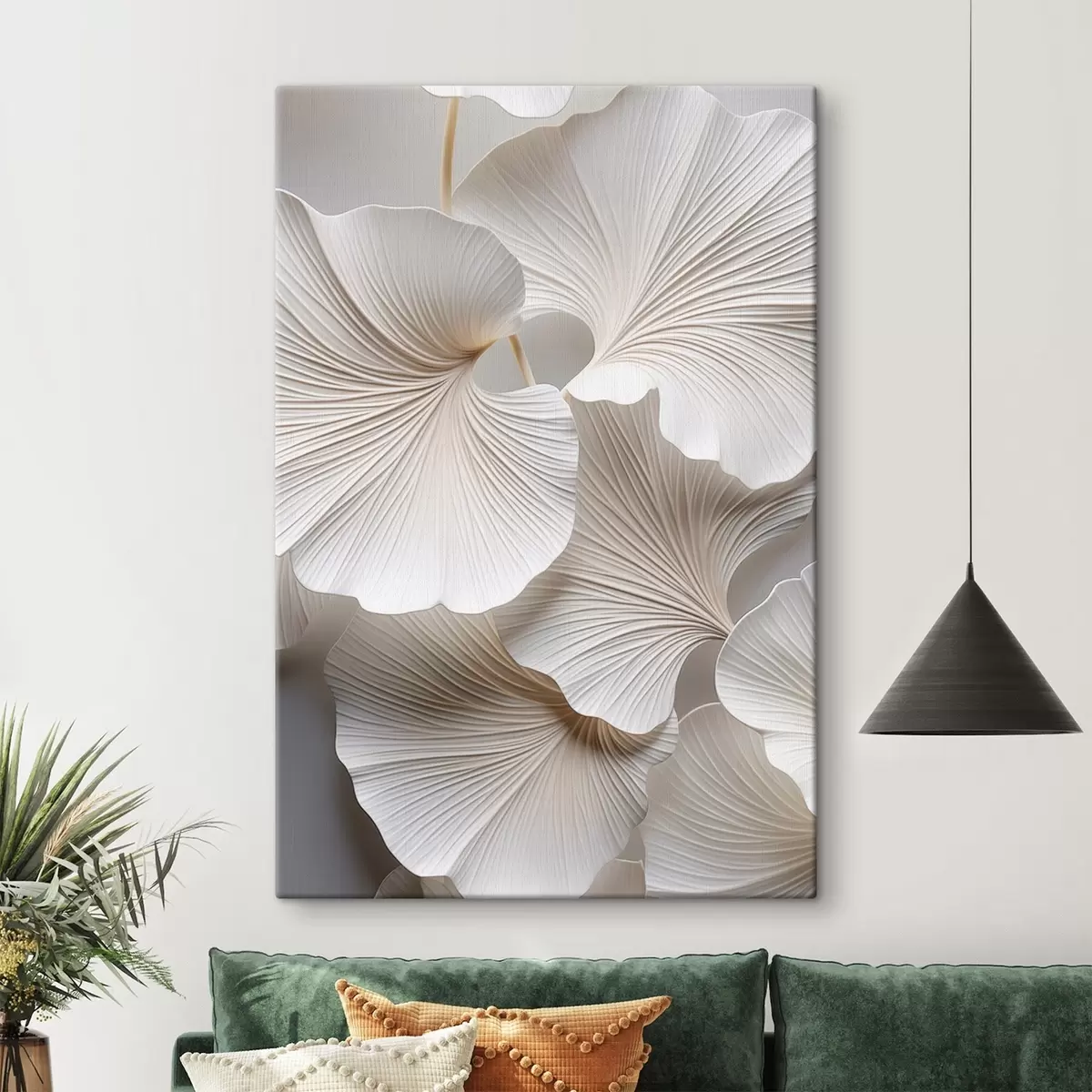 Tableau Feuilles blanches de ginkgo biloba avec des nervures détaillées, éclairage doux, design élégant et minimaliste texturé. s46705