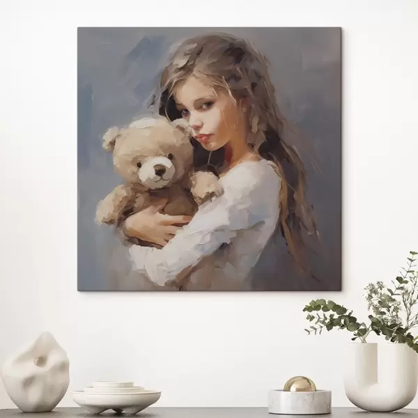 Tableau Fille avec un ours en peluche, imitation de peinture s46746