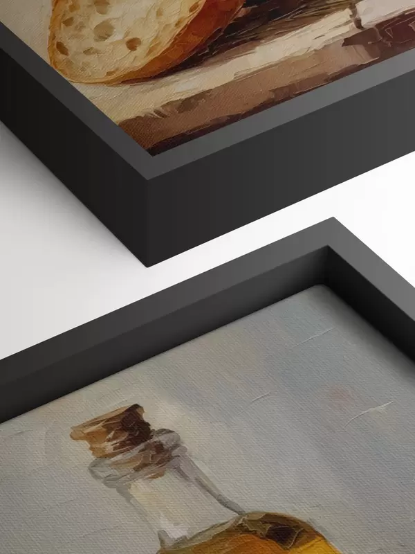 Tableau Du pain et une bouteille d'huile, peinture d'imitation s46759