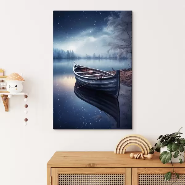 Tableau Bateau vide au bord d'un lac en hiver Nr s46773