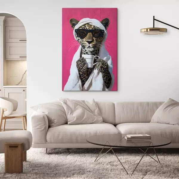 Tableau Guépard avec café s46791