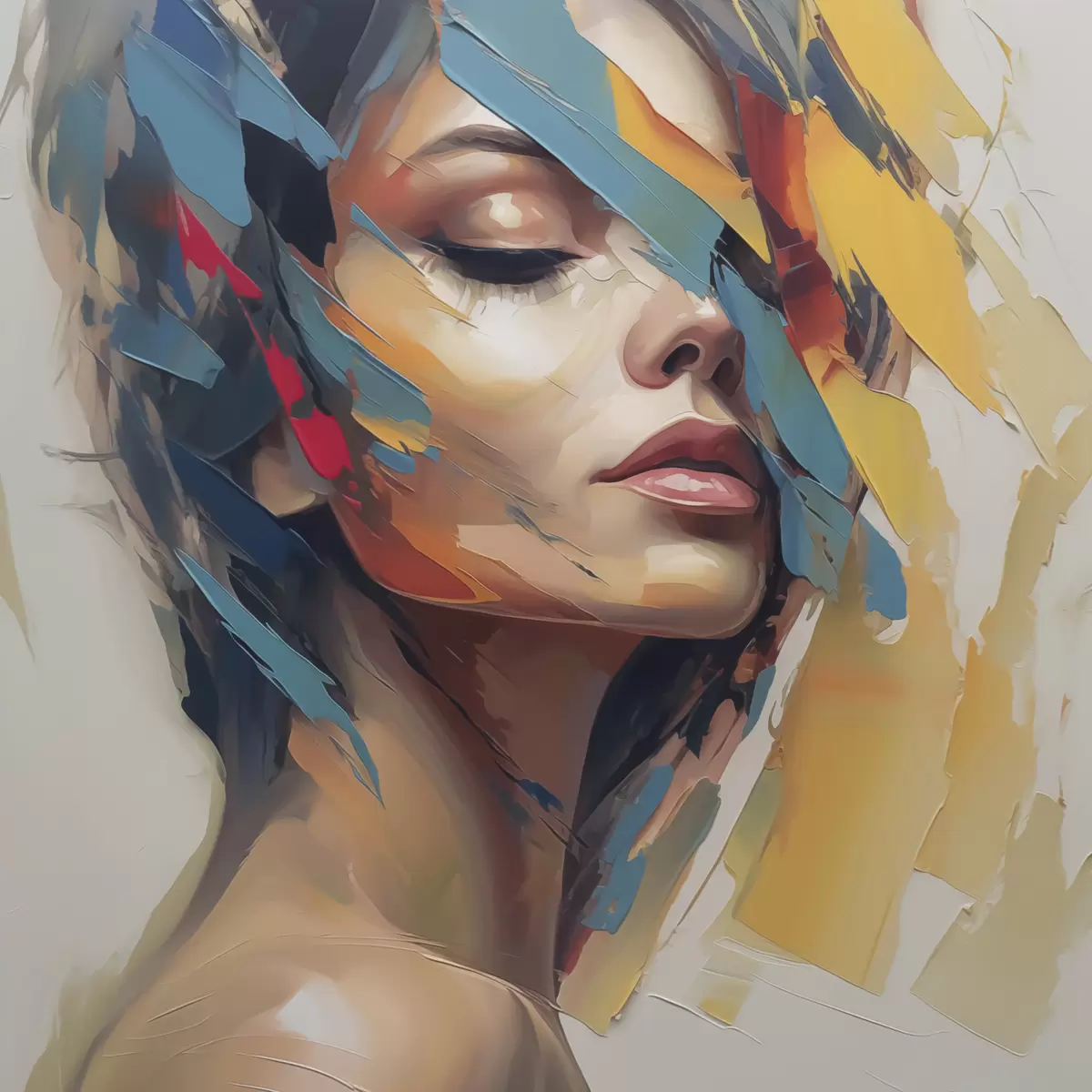 Tableau Portrait féminin abstrait imitant la peinture Nr s46918