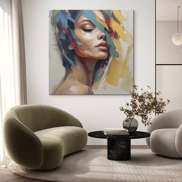 Tableau Portrait féminin abstrait imitant la peinture s46918