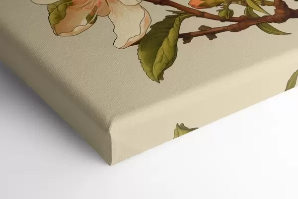 Tableau Branche fleurie avec des fleurs blanches sur fond beige dans le style d'une illustration classique s46923