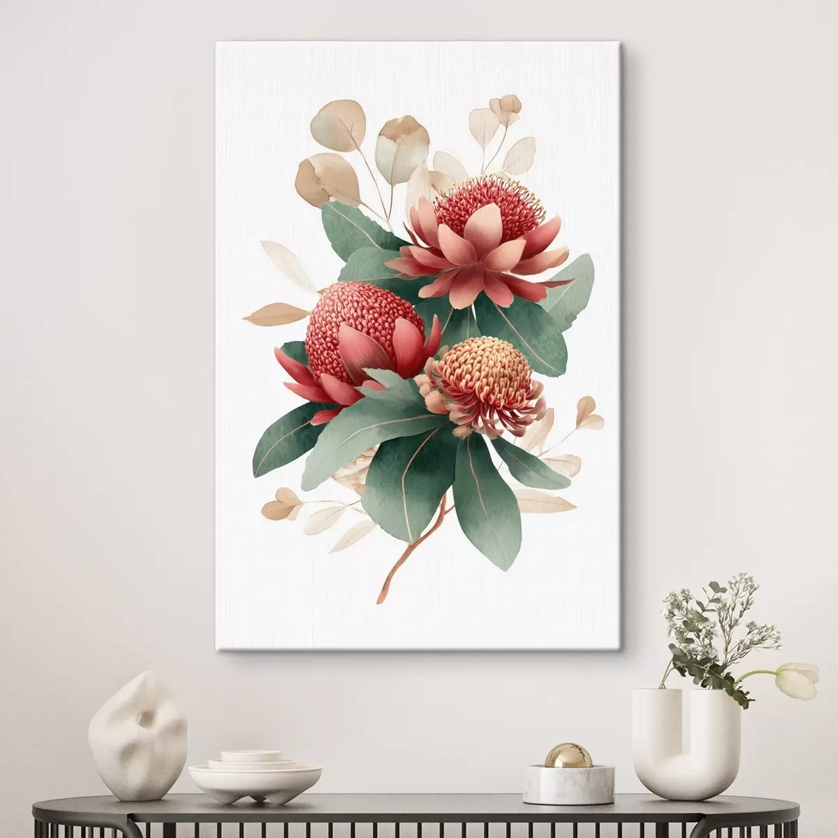 Tableau Composition florale avec de grandes protéas et de l'eucalyptus dans un style moderne d'illustration numérique. s46955