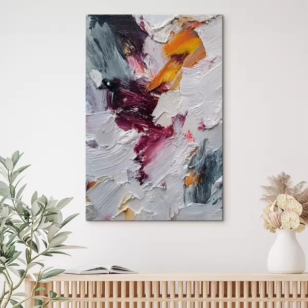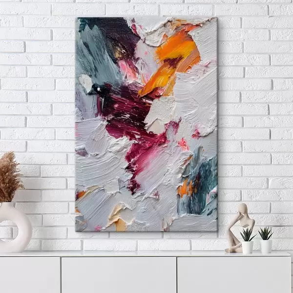 Tableau Composition abstraite avec des touches intenses de cerise et d'orange dans un style de peinture à l'huile s46959