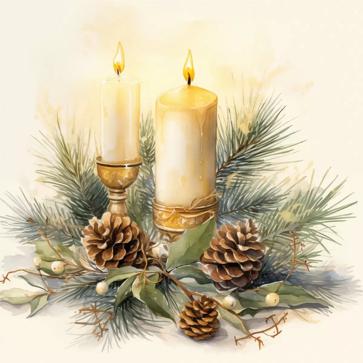 Tableau Composition, Nouvel An, sapin et bougies Nr s46971