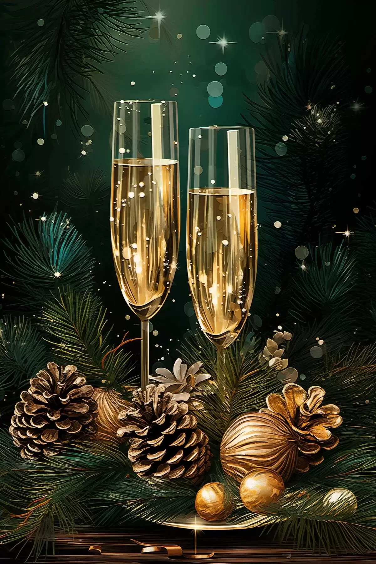 Tableau Composition du Nouvel An, coupes de champagne s46981