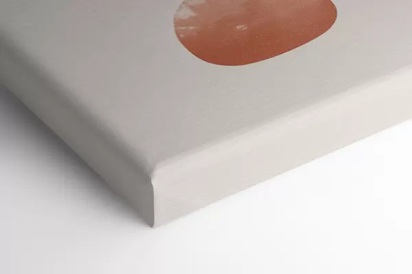 Tableau Formes abstraites, pierres texturées et feuilles dans des tons pêche et terre cuite discrets, minimalistes, fond crème Nr s47012