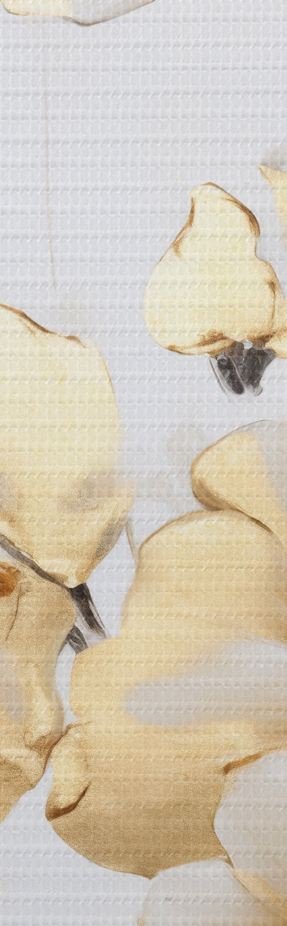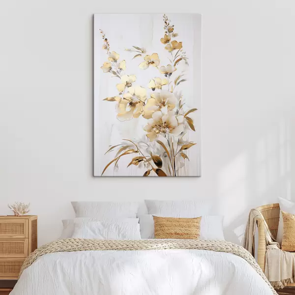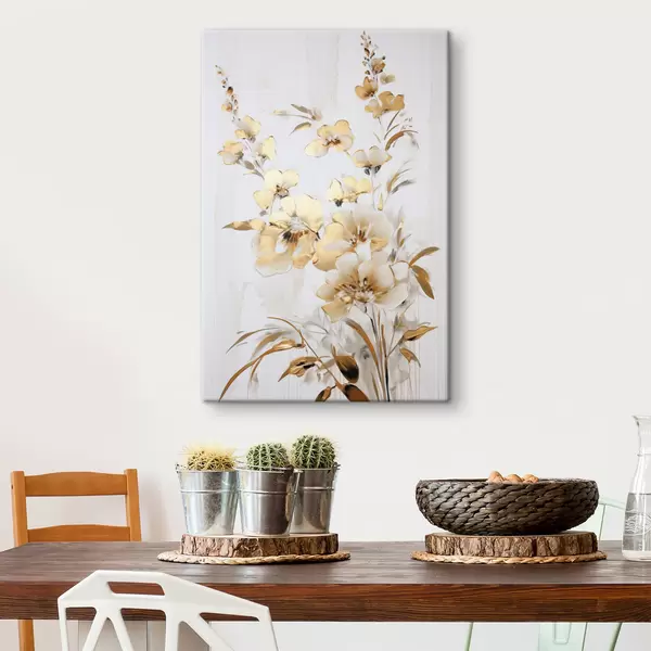 Tableau Fleurs et feuilles jaunes texturées sur fond blanc, avec des coups de pinceau délicats Nr s47016