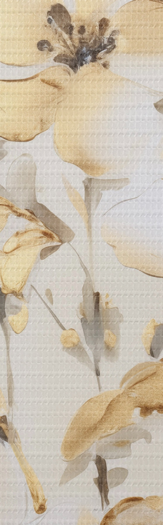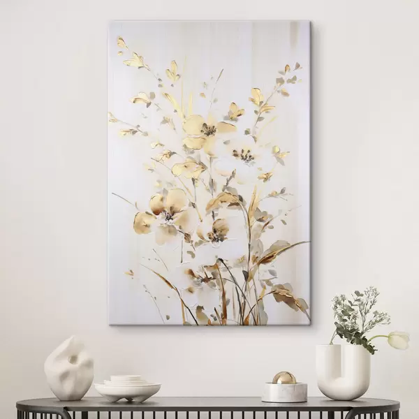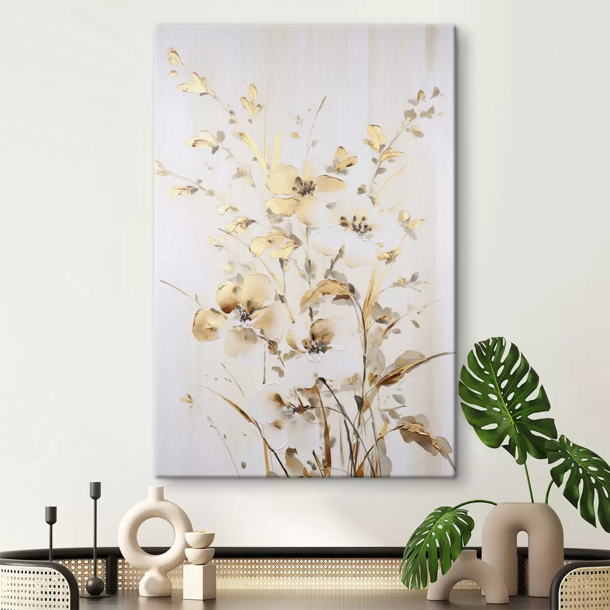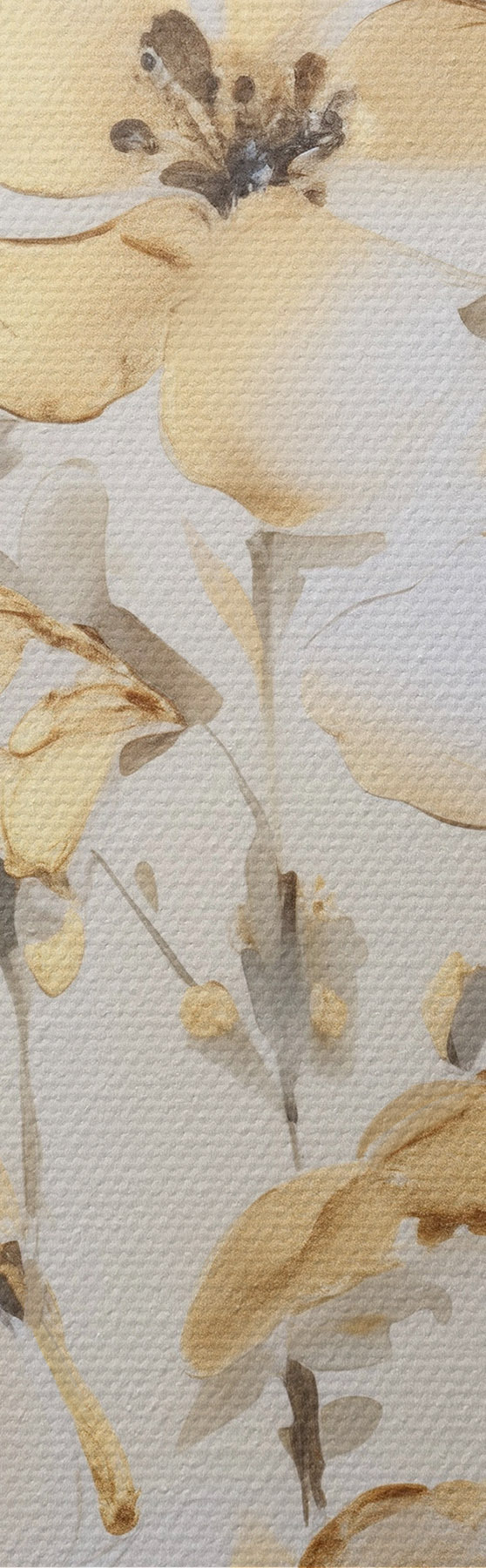 Tableau Fleurs et feuilles jaunes texturées sur fond blanc, avec des coups de pinceau délicats Nr s47017