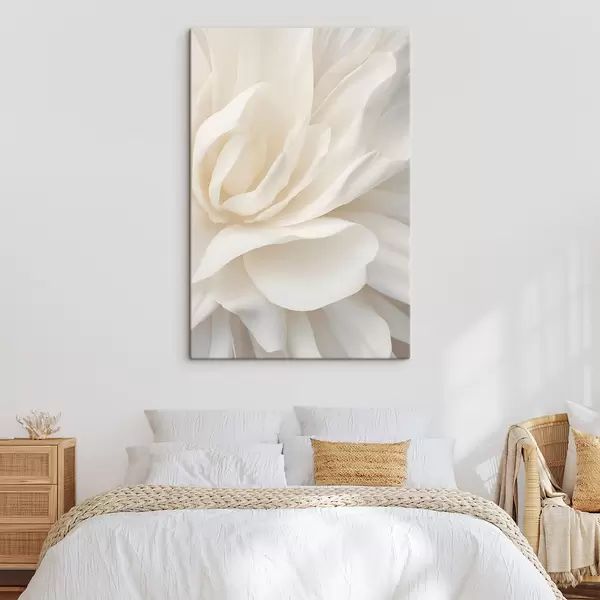 Tableau Fleur blanche abstraite aux pétales délicats et superposés, art minimaliste Nr s47024