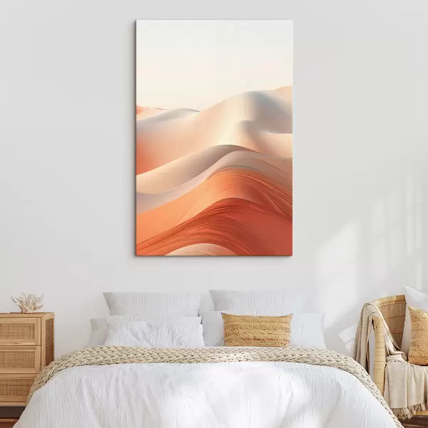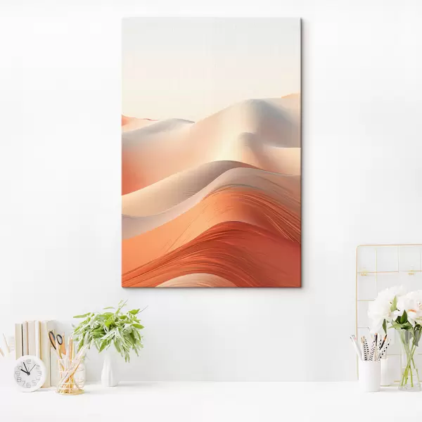 Tableau Paysage désertique abstrait avec des dunes de sable ondulantes dans des tons chauds orange et blanc s47031