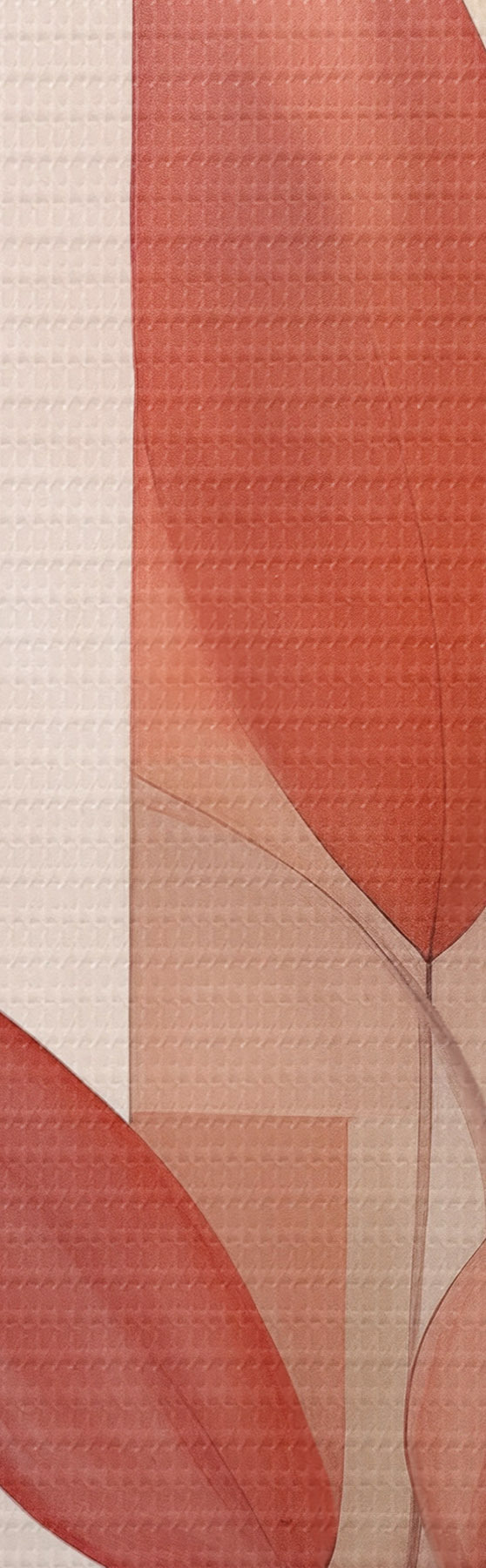 Tableau Plante abstraite aux feuilles rouges sur fond de formes géométriques et de couleurs douces et discrètes Nr s47041