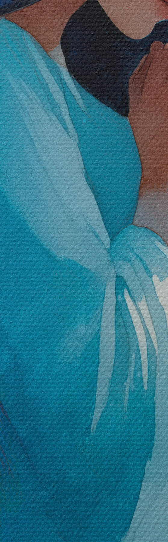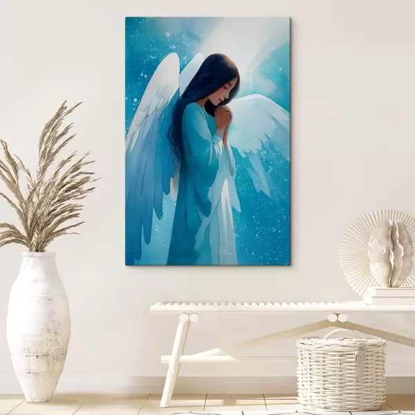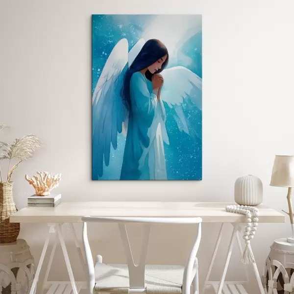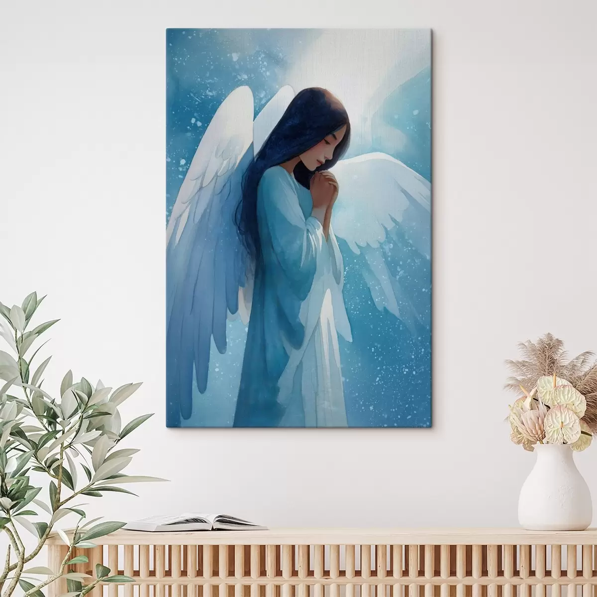 Tableau Harmonie aquarelle : ange dans la lumière sur fond bleu s47094